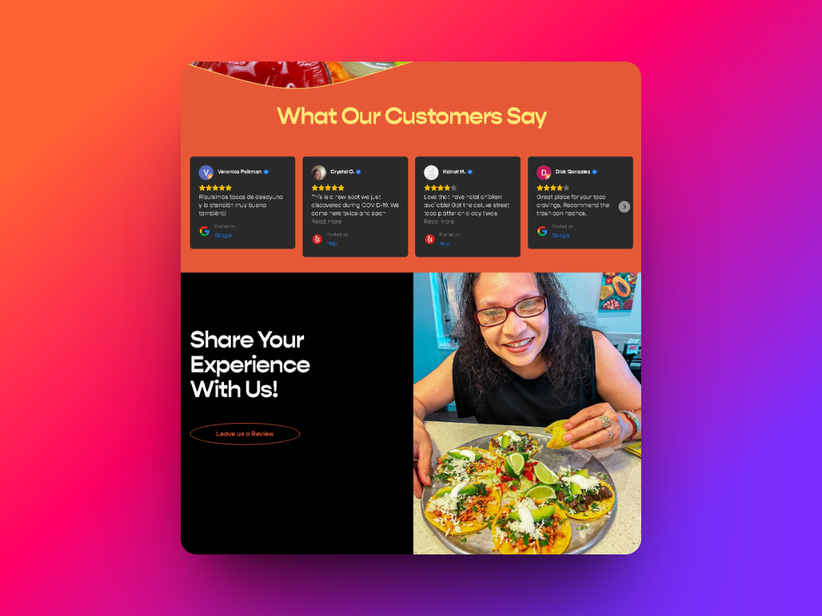 - SEO Optimization: Implemented SEO best practices to improve online visibility and attract taco enthusiasts.