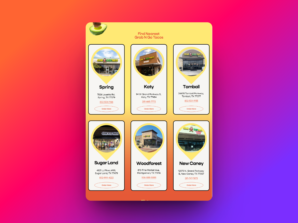 - Timely Delivery: Completed the project on schedule, meeting Grab n Go Tacos’ requirements and expectations for their online presence